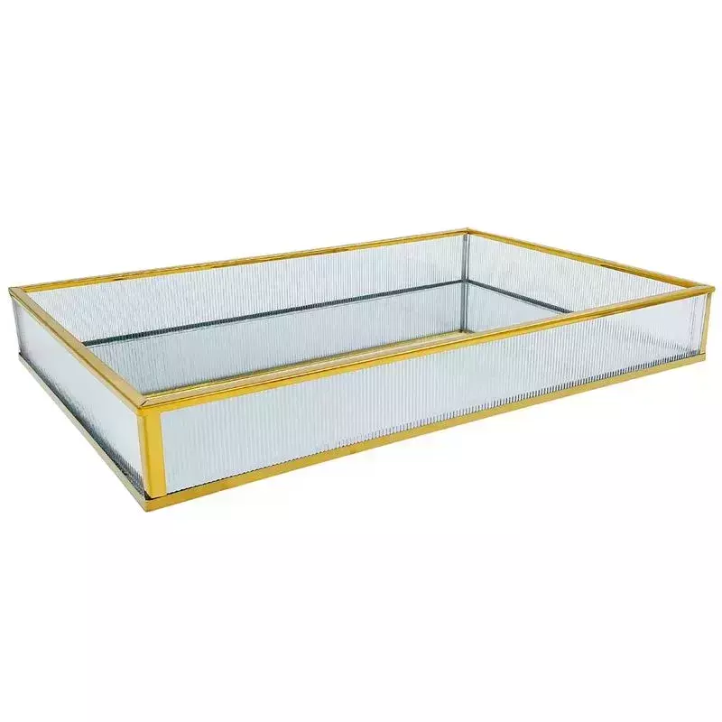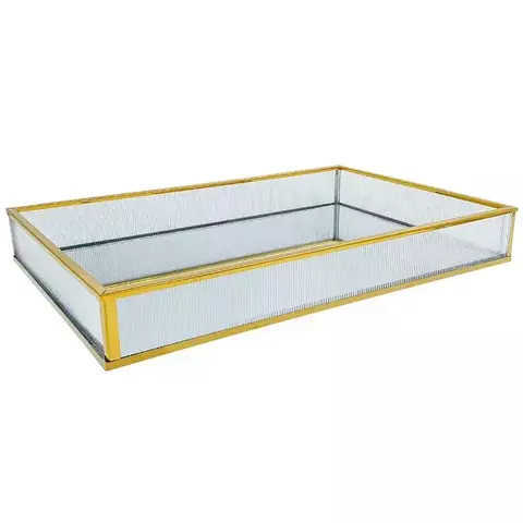 Com 25 cm de comprimento, 15 cm de largura e 3 cm de altura, esta bandeja espelhada destaca-se pelo acabamento sofisticado e pela borda dourada que adiciona um toque luxuoso a qualquer ambiente. Ideal para organizar objetos, servir bebidas ou realçar peças decorativas, ela transforma seu espaço com charme e praticidade.