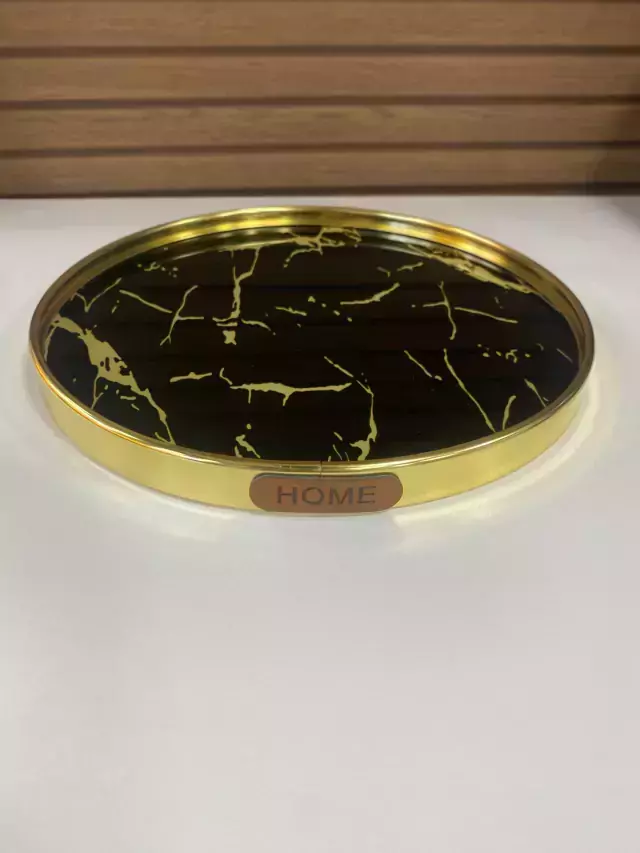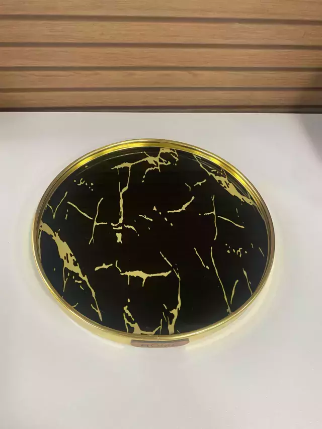 A bandeja dourada de vidro preto com 28cm de diâmetro é uma peça sofisticada e elegante, ideal para diversas finalidades decorativas e práticas. O contraste entre o dourado e o vidro preto cria um visual impactante, adicionando um toque de luxo e estilo a qualquer ambiente.