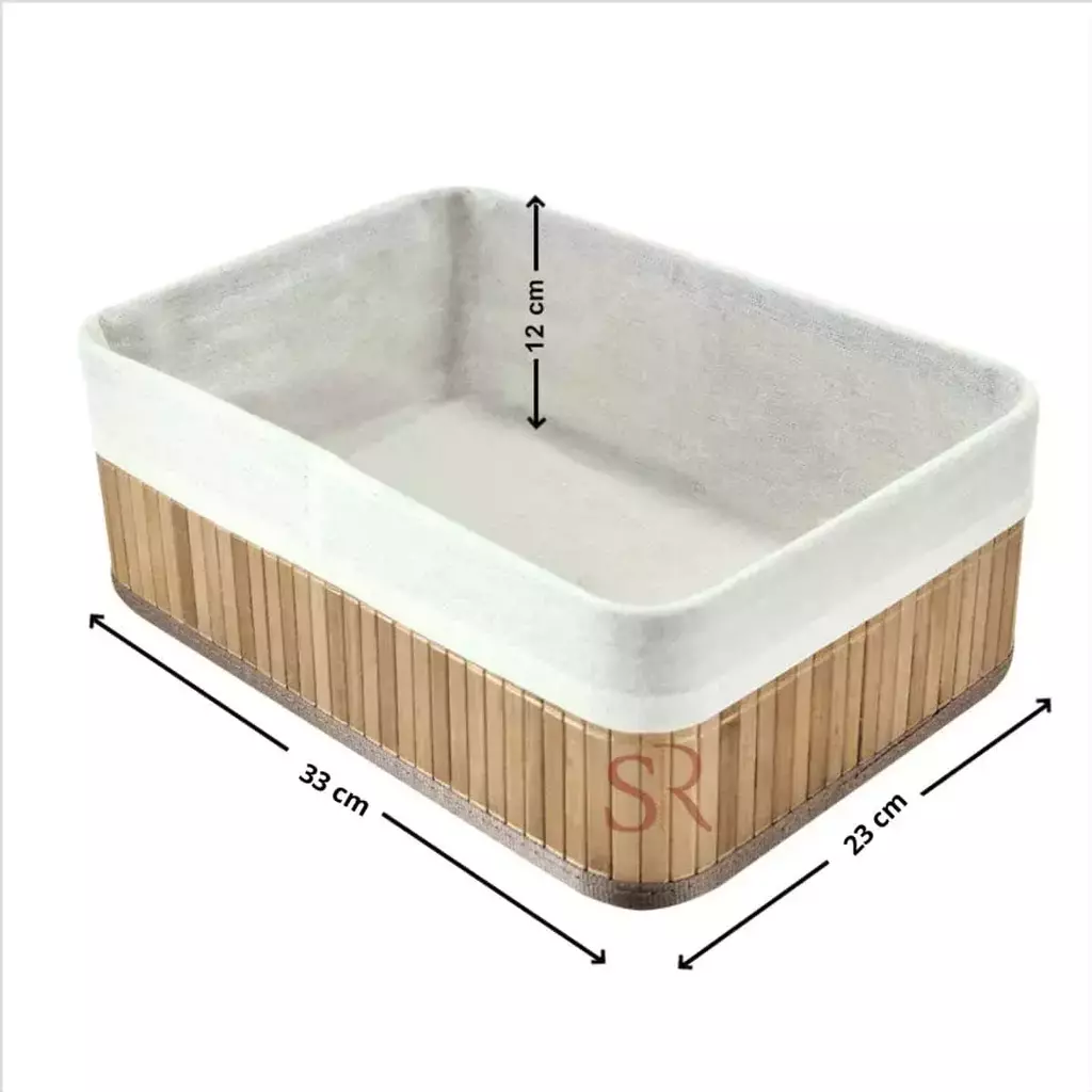 Material de Qualidade: Fabricado em bambu claro, este cesto organizador é durável e possui um acabamento natural que adiciona um toque de charme a qualquer ambiente. Forro Incluso: Acompanha um forro que adiciona uma camada de proteção aos seus objetos e facilita a limpeza do cesto.