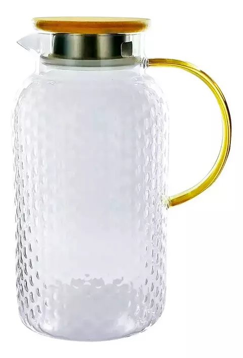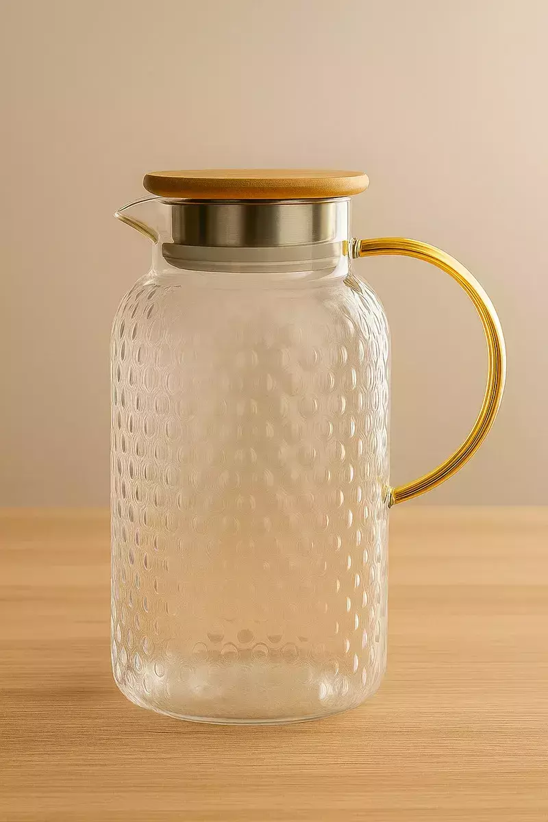 Com capacidade de 1,8 litros, design moderno com textura em colmeia (Honey), e tampa de bambu com vedação em silicone, essa jarra une beleza natural e praticidade. O bico direcionador facilita o servir sem respingos, enquanto o vidro transparente valoriza a apresentação das bebidas.