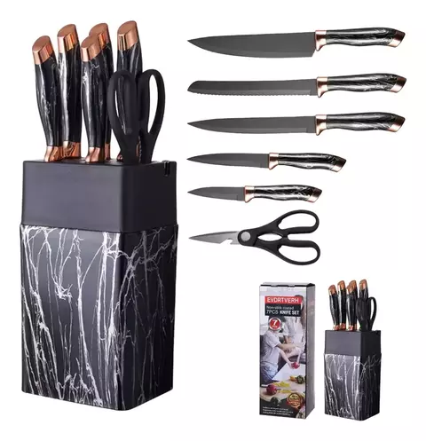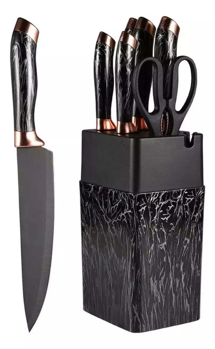- O Conjunto de Facas Marmorizadas 7 Peças Grande Luxo une sofisticação e funcionalidade para sua cozinha. Com lâminas afiadas e precisas, este conjunto é ideal para diversas tarefas culinárias, proporcionando cortes perfeitos e facilidade no manuseio.