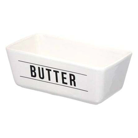 Manteigueira de porcelana Manhattan com espátula em inox branca 15x08 cm